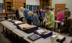 Members of The Wodehouse Society get an up-close view of artifacts from Vanderbilt’s P.G Wodehouse Collection. (Tim Gollins/Vanderbilt)